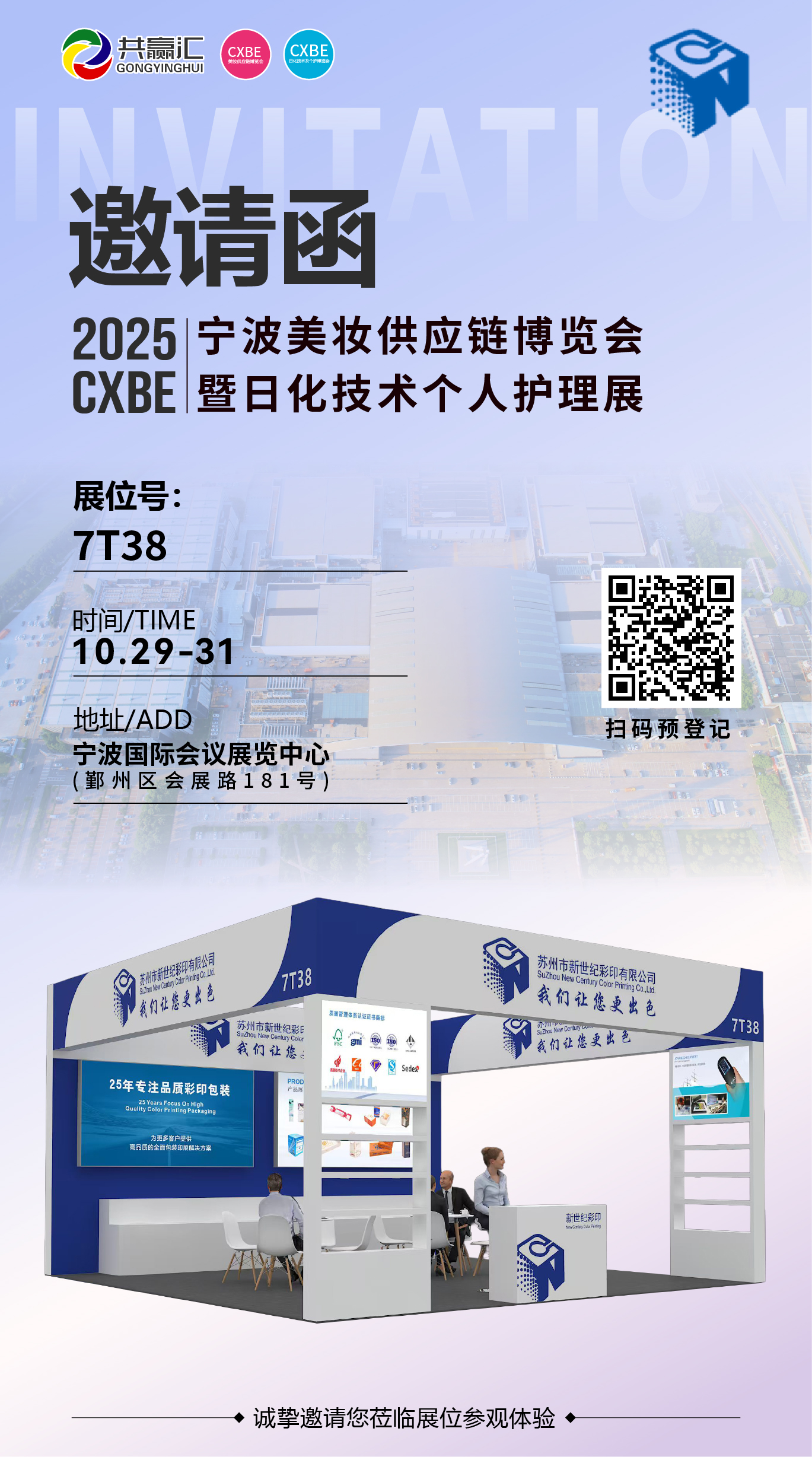 Suzhou New Century Color Printing Co., Ltd. invită cu drag toți participanții să viziteze Standul 7T38 pentru a-și explora gama de produse și a discuta potențialele colaborări.